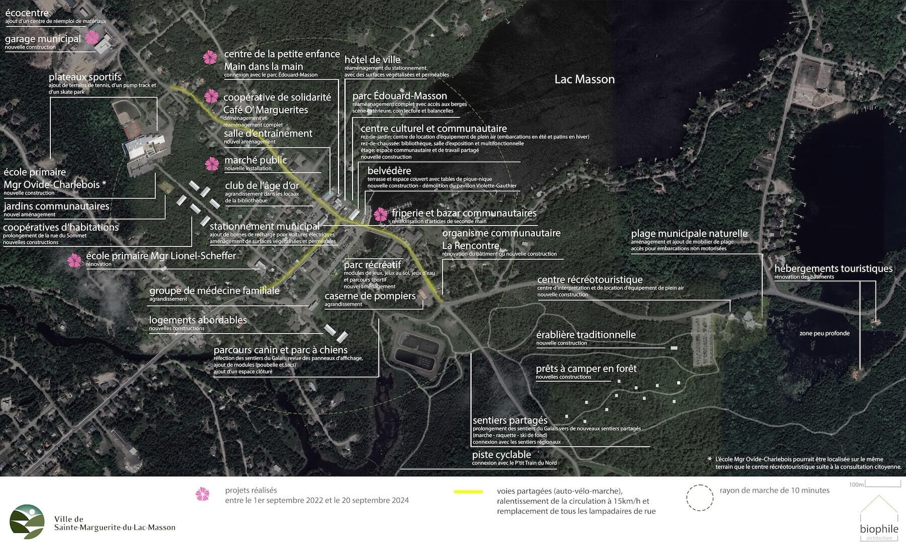 Biophile Architecture prepared this master plan as part of the public consultation process for the village center of La Ville de Sainte-Marguerite-du-Lac-Masson. Designed to open up discussion and consult citizens, it invites people to imagine a lively, human village where residents take the time to meet, share, and live in harmony with the surrounding nature.