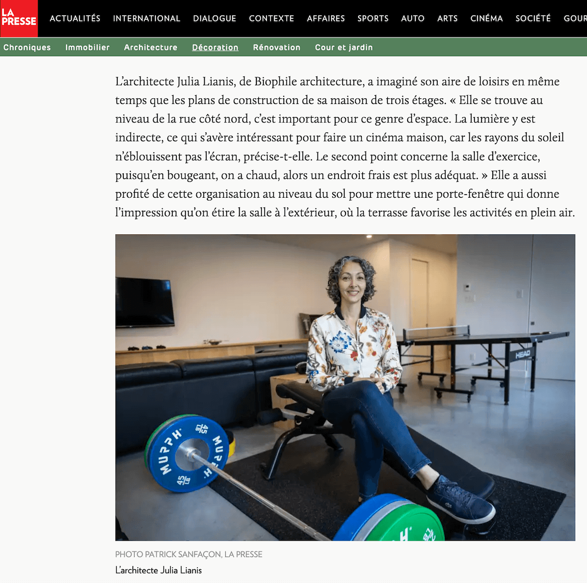 Dans le cadre de la Semaine de la construction durable des Elles de la construction, du 12 au 16 juin 2023, l’architecte Julia Lianis était conférencière lors du webinaire L’architecture biophile selon Biophile architecture. Elle a expliqué comment mettre en oeuvre une architecture en plein coeur de la nature, en harmonie avec l’environnement, afin d’offrir un espace de vie lumineux et ouvert sur l’extérieur. Elle a également présenté quelques projets, sous la formule sur mesure, qui intègrent les principes de design solaire passif tout en proposant une architecture simple et authentique témoignant du climat particulier du Québec.